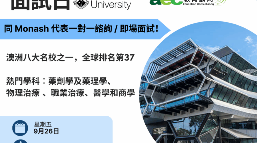我們的海外升學顧問亦會在香港定期舉辦各類型講座、資訊日,提供海外升學提示,並教導學生如何為海外留學作好準備及適應海外生活;同時,海外升學顧問亦會跟進香港學生離港升學的初期適應問題、定期往海外院校探訪學生等。aec升學顧問務求以最專業的態度幫助每位學生規劃海外升學前路,讓學生能好好享受海外留學的學習生活,立即聯絡我們升學中心擴展自己的未來!