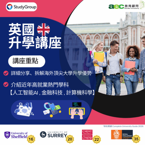 你所提供的資料,包括《個人資料(私隱)條例》所指的個人資料,只會用於相關活動。為讓你得知最新活動的資料,我們將使用你的個人資料,包括你的姓名、電話號碼、郵寄和電郵地址,為你提供有關的課程、活動、服務及資訊,請繼續填寫以下表格並按「提交」。你的個人資料亦可能被用作研究或統計用途。你有權要求查閱及修正你的個人資料,也可選擇是否同意接收上述資訊。aec教育顧問希望為你提供準確而貼身的一站式升學服務,過程中需要聯絡學生或家長提供最新的海外升學資訊及更新申請狀況。若不同意,請電郵至enquiry@aecl.com.hk。