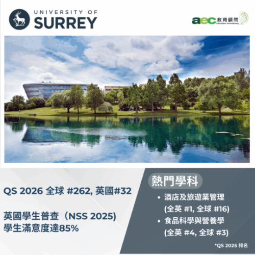 學生和家長如果想了解多點關於University of Surrey的課程及獎學金資訊💰,或其他關於英國留學的疑問❓,歡迎與aec的顧問聯絡☎️,我們會一一解答你們的升學疑慮🤝